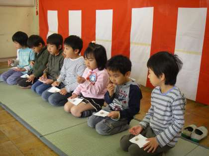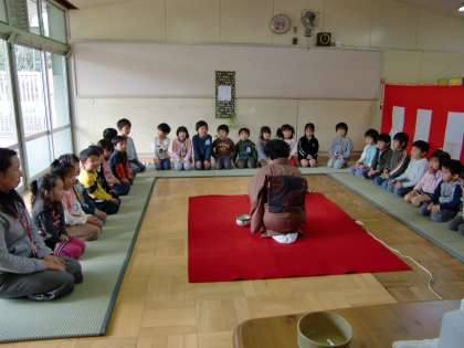 地域の女性会のお力をいただいてお茶会の体験を年長児がしました。