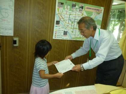 4歳児2名,5歳児2名の4名が,教育長より賞状をいただきました。園長室で授与式を行いました。