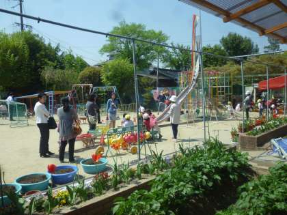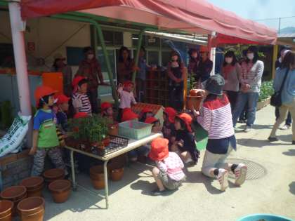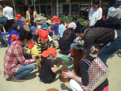 ゆり組は「自由遊びの様子」をみていただきました。ばら組は「苗植え」をおうちの方と一緒にしていただきました。