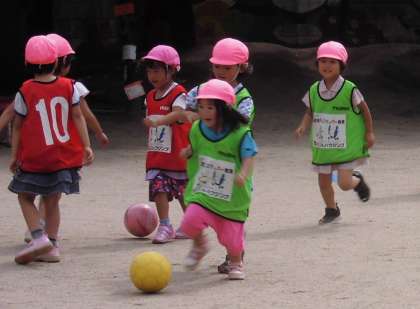 わくわくニュースです!サッカー教室がありました。おにごっこや試合など、たくさんからだを動かしていた子どもたち。「ころんだけど、泣かずにがんばったよ!」とにこにこ顔で教えてくれました。