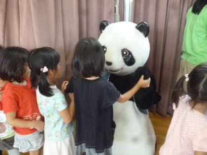 初めに歌おねえさんと一緒に歌を歌い,次に「ブタのキョートン・パンダのファンファン・うさぎのよしえさん」の劇を見ました。朝はちゃんと起きて,朝ご飯を食べなきゃいけないこと,家で遊ぶ時はテレビを見るより友達と遊んだ方が楽しいことなどを教えてもらいました。そして最後にみんなで歌を歌って終わりました。みんなで写真撮影もしました。