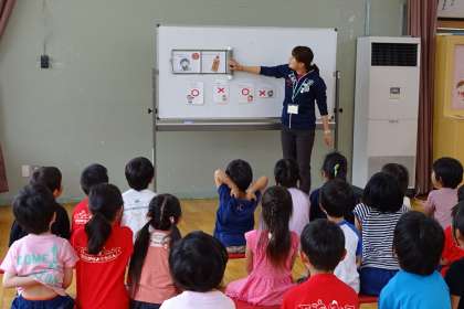 6月の保健指導は熱中症についてのお話をしました。ゆり組さんとは熱中症に関する○×ゲームをしたり,忍者の巻物に書かれている熱中症にならないための忍術を確認したりしました。熱中症にならないように,しっかり予防していこうね!