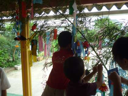 個人の笹飾りを作った後,みんなで1本の笹飾りも作りました。どんな願い事がかかれているのでしょうか?見に来てください。