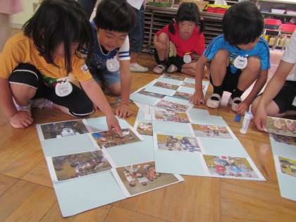 昨日の交流の時に、会えない間も気持ちがつながるようにとグループ写真を撮りました。今日はその写真を見ながら子どもたちが嬉しそうに自分のグループのことをおしゃべりしていました。2年生や保育園のお友達に早く会いたいね!