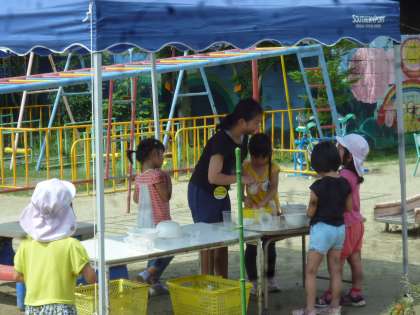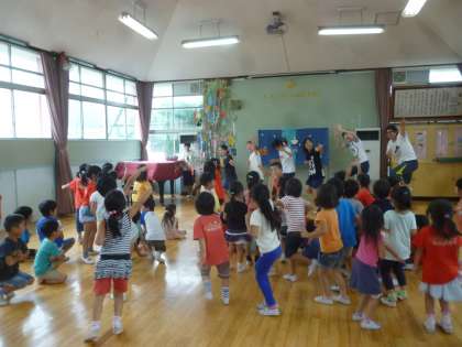 7月1日(水)〜7月7日(火)チャレンジ体験がありました。初めは小さな子どもたちに戸惑っていた中学生でしたが,だんだんと慣れて園児とたくさん遊んでいました。最後の日にお別れ会をしました。みんなで踊りました。