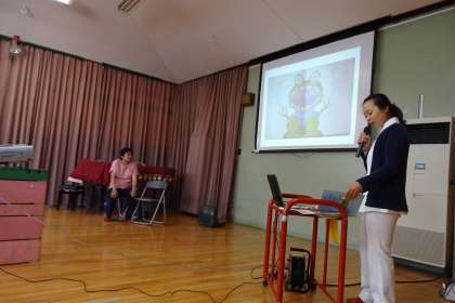 後半は,保護者を対象に学校歯科医の金谷先生からお話をしていただきました。歯と口のケアは,やはり「毎日・毎食後の歯みがき」が基本です。お子さんの歯みがきの後は,仕上げみがきをしてあげてほしいと思います。