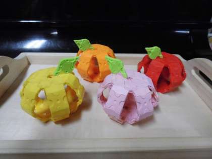 左から柚・みかん・桃・りんご・・・と色を考えて作りました。