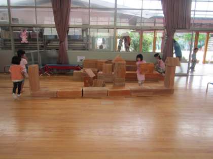 すると,ダンスショーをしている横で「私たちもダンスする!!」と,年少組の友達が同じようにステージを作っています。後で,担任の先生に聞いてみると,保育室でも「ダンスしたい!」と踊っていたそうです。