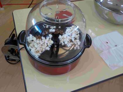幼稚園で収穫したトウモロコシを使って、ゆり組でポップコーンを作りました。