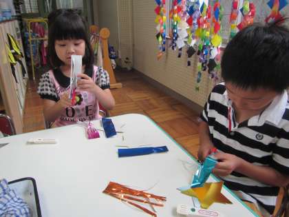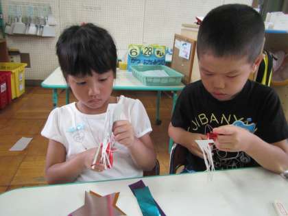 ことり組は、今日は七夕製作で流れ星をつくりました。
