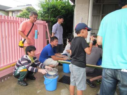 昨日,京極みんなの会のお父さん方が,そうめん流しをしてくださいました。