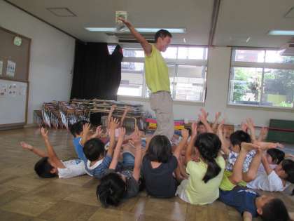 先生とクラスの子どもたちの信頼関係がしっかりできていて,子どもたちが先生の話をしっかり聞き,先生の姿をよく見て,目を輝かせて遊んでいました。