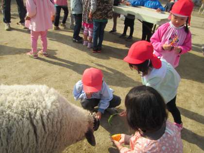 やぎやうさぎや羊,ポニー,モルモット,フクロウなどたくさんの動物と,ポニー動物園の園長先生の「動物さんたちと,仲よくしてね」という言葉通り,親しみ優しくかかわり友達になったようでした。「あ〜楽しかった」と,大満足の一日でした。