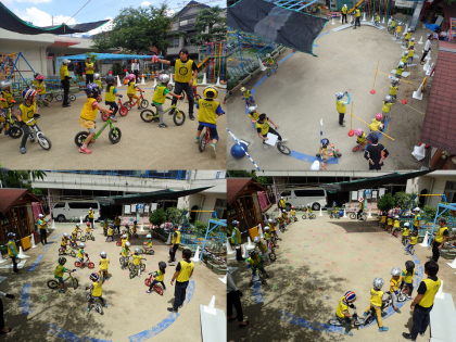 そして,一人一台ずつキックバイクにまたがって,