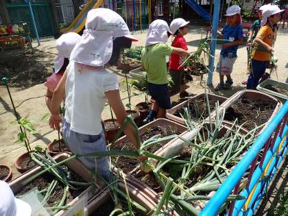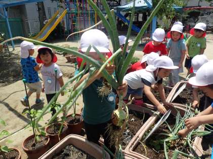 年長・ことり組の子どもたちが収穫しました。