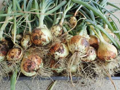大きく育った玉ねぎがたくさん収穫できました。