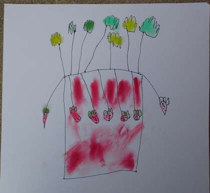 いちごと植木鉢の色は,似ているけれど違うからね。