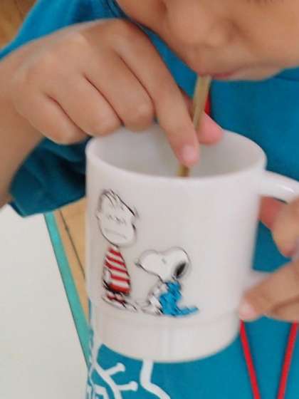 子どもたち,ストローで飲んでいるでしょう。
