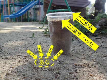 You can tell by looking at how much the sand that was full of cups has decreased.