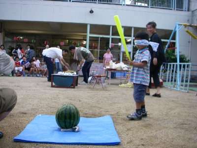 まず,すいか割り,なかなか思うように割れません。