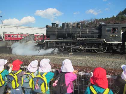 発車を見ていた時は、大きく聞こえていた汽笛の音も乗ってみるとそこまで大きくは聞こえず、子どもたちはキョトンとした表情で、不思議そうにしていました。