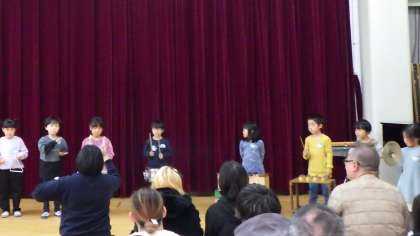 2月21日は生活発表会を行いました。5歳児は歌「北風小僧の寒太郎」と「あしたははれる」を歌ったり、楽器演奏で「星に願いを」「あしたははれる」を演奏したりしました。また、劇遊びでは、「おしいれのぼうけん」のお話で遊びました。