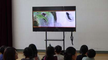 今日は久しぶりのお天気の良い空を、幼稚園の鯉のぼりたちが気持ち良さそうにおよいでいました。そして、子どもの日の集いがありました。今日の集いは、ひよこ組さん・ぷちうさぎ組さんも一緒に参加!みんなで鯉のぼりの歌を歌い、園長先生のお話を聞いたり、絵本を見たりして過ごしました。