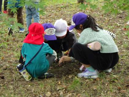 今日は京極小学校、鶴山保育所のお友達と京都御苑で遊びました。少しずつ色づいてきた葉の様子を楽しみながら御苑の中を進み、京極小学校、鶴山保育所のお友達と合流!一緒に”秋探し”を楽しみました。お友達と一緒にどんぐりや栗、落ち葉や松ぼっくり…色々な秋を見つけて楽しかったね。また、一緒に遊ぼうね♪