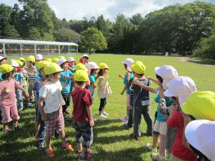 植物園の芝生広場でジャンケン遊びやわらべうた遊びをしたりしました。