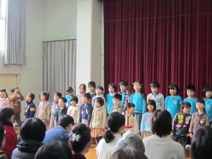 ことり組(5歳児)は,お話『エルマーのぼうけん』の劇あそびや歌,リズム合奏をしました。一人一人が自分の役割を理解し,楽しみながら,最後までやりきろうとする気持ちがみられました。みんなで一緒に考えたり力を合わせたりして協力する姿を,お家の人にも感じてもらえたのではないでしょうか。もうすぐ一年生になるのだとしみじみと感じさせられました。