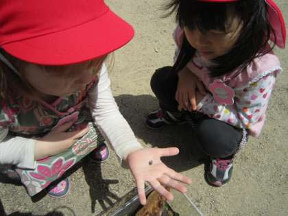 園庭のあちこちに隠れているだんご虫に関心が出てきました。