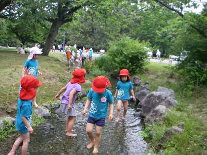 目的地は出水の小川。幼稚園からは、地下鉄1駅分の距離ですが、みんながんばって歩きました。