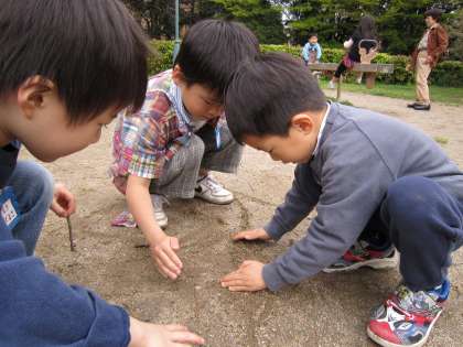 幼稚園から歩いてすぐの京都御苑に,年長組がお散歩遠足にでかけた時のことです。