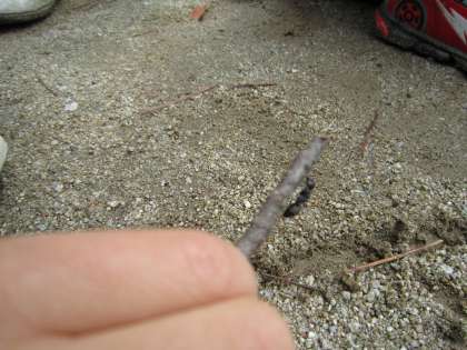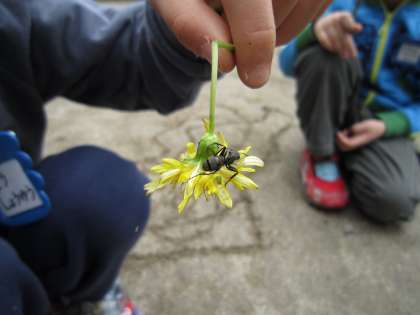 たんぽぽを摘んでいると,すご〜く大きなアリを発見しました。「すごいっ!大きいよ」「アリのおうちはどこだ?」「追いかけよう」とアリの進む方へと・・・アリは地面を行ったり来たりしていました。(アリさん,お散歩中ですぅ〜)