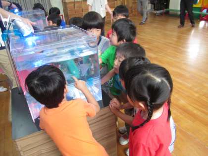今日は、京都水族館から6種類のクラゲが幼稚園に来てくれました。