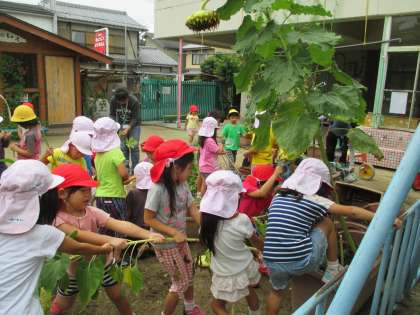 おおきなひまわりを引っ張るのも,虫さがしも楽しかったようです。