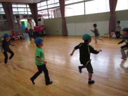 ことり組は上賀茂幼稚園の年長組のゆり組さんと三色帽子とりもして元気いっぱいでした。