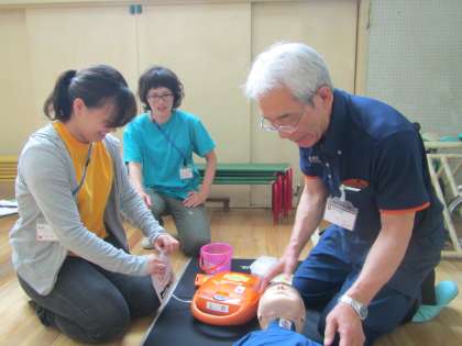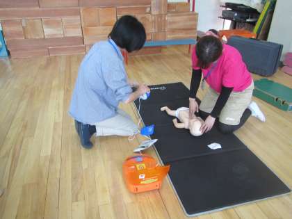 心肺蘇生法,AEDの使い方,誤飲の時の処置を教えていただきました。