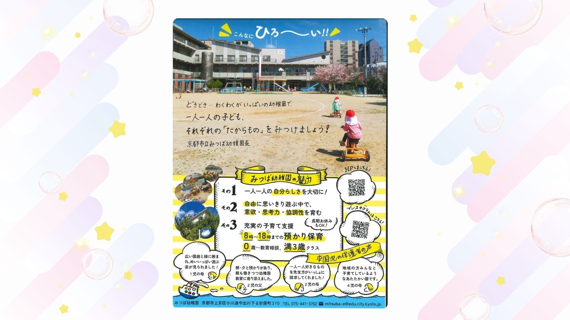 園見学等のお問い合わせは、(075)441-3752まで、お気軽にどうぞ!