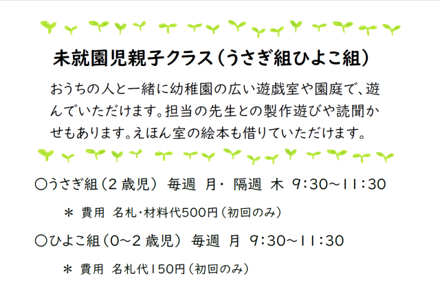 未就園児クラスについて