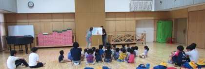 子どもたちは大型絵本や紙芝居の読み聞かせを楽しみにしています。