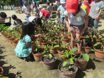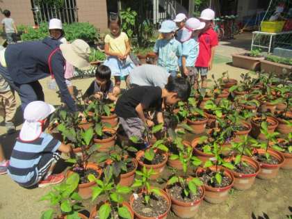 一人一鉢で植えたナスやピーマン、トマトなども少しずつ大きくなってきています。