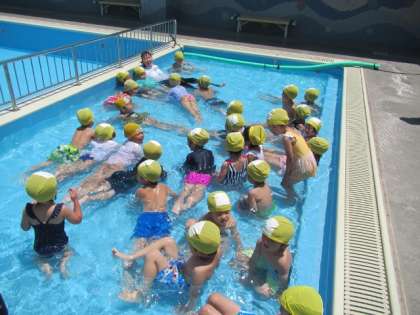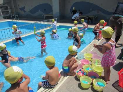 4歳児の子どもたちも久しぶりのプールをとても喜んでいました。