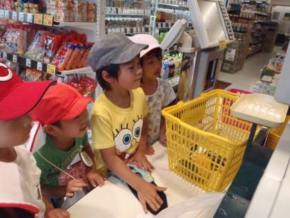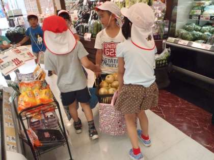 今日は5歳児のゆり組が,幼稚園の近くのスーパーへ材料の買出しに行きました。