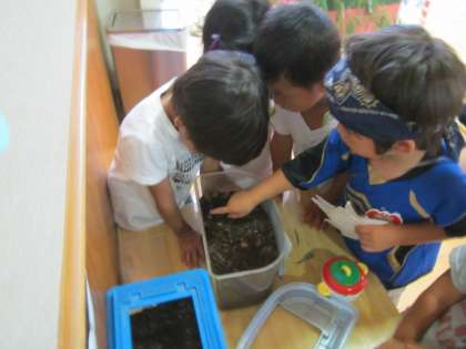 子どもたちは「カブトムシが生まれた!」といって大喜びです。