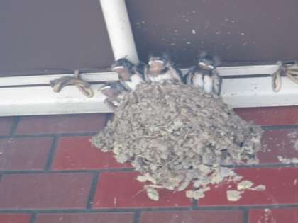 幼稚園の近くのお店の軒下に、つばめが巣をつくっています。なかよしタイムに子どもたちと見に行きました。4羽の赤ちゃんつばめが、親鳥が餌をくれるのを今か今かと待っていました。すると、すーっと素早く親鳥が巣に餌を与えに帰ってくるところが見られました。一瞬のことで子どもたちもびっくりしていました。もうすぐ巣立ちそうな赤ちゃんでした。みなさんも、また見つけてみてくださいね。かわいいですよ。