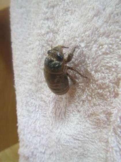 17日、夕方4時半ごろ、幼稚園の通路でセミの幼虫が歩いているのを発見しました!