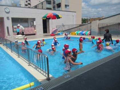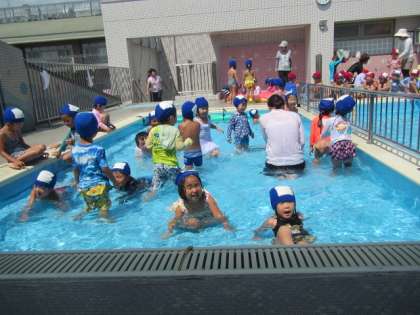 終業式もありますが、やっぱりこんなお天気の日はプールです!
