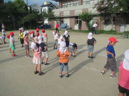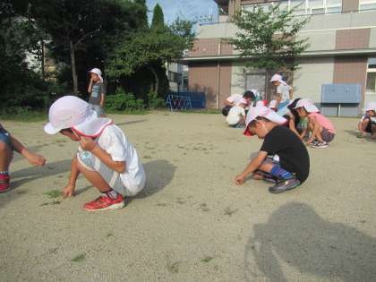 身支度を済ませて,地域の方と一緒に広場の草むしりをしたり,一緒にラジオ体操をしたりしました。