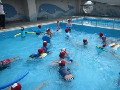 夏の間に水に慣れ、「見てて!」と顔を付けたり、潜ったりして自分の得意になったことを友達や先生に見せていました。